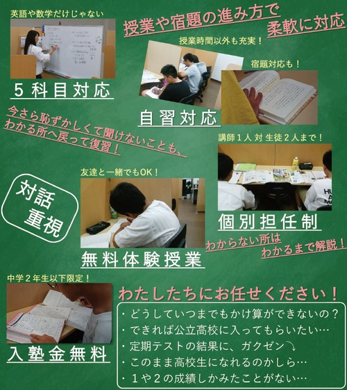個別指導塾だから、1人1人のできない所、苦手な所をしっかりカバーできます。